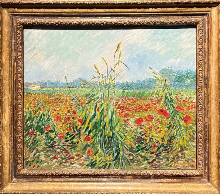 '밀밭의 양귀비'를 보면 고흐의 마음이 어떨지 짐작해본다. 붉은 양귀비가 아름다운 여성성을 보여준다면 초록 밀은 위풍당당한 남성성을 보여준다. 마치 변상벽의 '어미닭과 병아리'그림에서 바위가 남성성을 보여주듯. 자연물만으로도 약동하는 로맨스가 느껴지도록 그려낸 반 고흐! 오래도록 머물고 싶었지만 밀려오는 인파로 자리를 옮겨야 했다. 이럴 때는 나오시마 예술섬의 지중 미술관이 그립다. 안도 다다오가 건축한 이 미술관에 가장 인기 있는 전시관은 모네관이다. 관람객을 소수로 제한하여 호젓하게 관람할 수 있도록 해준다. 바닥은 흰 조약돌이 잔잔하게 깔려 소리를 흡수하게 해 놨다. 이토록 대접받으면서 명화를 관람할 수 있다니.