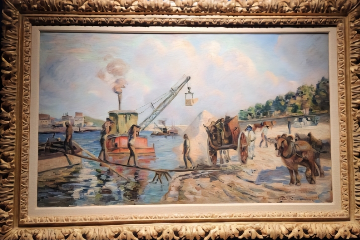 증기선, 공장 굴뚝, 증기 기관차가 이번에는 또렷이 보였다. 세느강에서 짐을 나르는 인부들은 한 눈에 보기에도 아슬아슬한 나무다리를 걷고 그 뒤에는 굳건하게 증기를 내뿜는 공장이 보였다. 근대를 알리는 모습이었다.