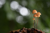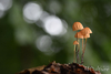 애기낙엽버섯 (Marasmius siccus) 아침저녁은 제법 시원한 느낌이 들고는 있지만 한낮의 햇살은 여전히 뜨겁습니다. 이즈음이면 부지런한 분들이 숲속을 찾아 떠나기도 합니다. 그분들이 산으로 향하는 것은 맛있는 먹거리인 버섯을 찾아 떠나는 것입니다. 먹을 수 있고 구분이 가능한 버섯이라고는 송이버섯뿐이지만, 사실 송이버섯을 산에서 찾는 것은 불가능한 일이란 생각이 들어 그분들과 함께 산속을 헤매지는 않지만 산속을 찾아 거닐다 보면 다양한 버섯들이 얼굴을 내미는 시기이기는 합니다. 덩치가 큰 버섯들도 눈에 들어오지만 도통 이름도 알 수 없고 버섯을 만지는 것도 겁이 납니다. 이맘때면 뉴스에 독버섯을 먹고 병원에 입원했다는 소식이 전해지니 만지는 것까지도 겁을 먹게 되는 듯합니다. 하지만 허리를 숙이고 숲속 나무 밑을 살피다 보면 예쁜 모습으로 자라는 작은 버섯들이 눈에 들어올 것입니다. 그 작은 버섯 중에서 애기낙엽버섯은 귀엽고 예쁜 모양을 하고 있어서 가까이 다가가 눈 맞춤하기 좋은 버섯입니다. 낙엽 사이에서 갓을 올리고 무리 지어 피어난 모습은 만화영화의 주인공인 개구쟁이 스머프의 마을처럼 보이기도 합니다. 조금 더 몸을 낮추고 바라보면 숲속 나무