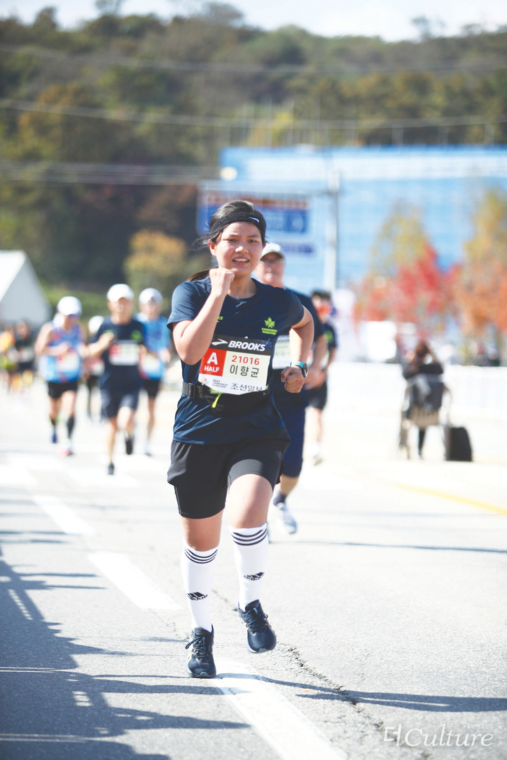 3년 만에 열린 춘천마라톤, 정말 기대가 많았죠. 어김없이 물들었을 춘천 단풍과 전국에서 몰려온 마라톤을 사랑하는 사람들… 이전 기록을 단축해 보겠다는 나의 야무진 꿈이 어우러진 마음은 부푼 풍선 같았죠. 하지만 웬걸요? 실전에 뛰어보니 발은 움직이고 있는데 뒤에서 옆에서 싱싱 추월해가는 사람들… A그룹이라 하기 무색할 기록이었지만 무엇보다 포기하지 않고 완주할 수 있어 감사했습니다.